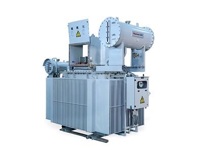 A furnace transformer supplies high-current, low-voltage power for electric arc or induction heating furnaces.